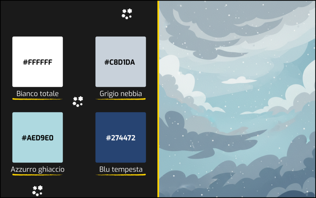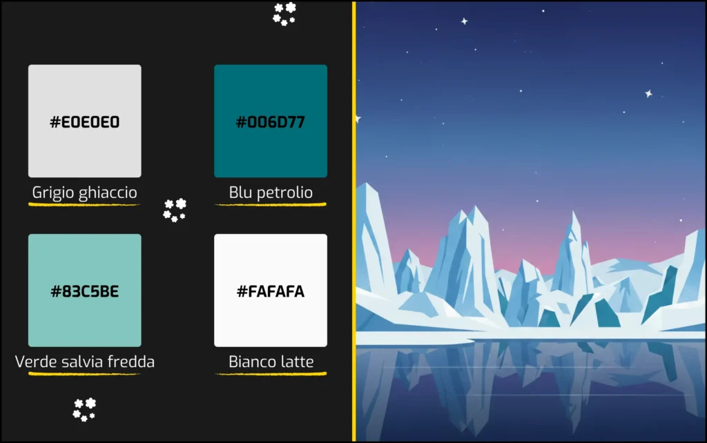 In questo articolo ti presento 4 palette colori invernali studiate per il web design, il branding e i progetti creativi. Per ognuna troverai: